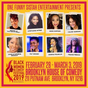 Join MESHELLE and a host of  headliners and festival showcasers for the first annual BWIC Festival.  The Black Women in Comedy at the Brooklyn House of Comedy will begin February 28 and conclude March 3 in Brooklyn, NY visit the festival link for tickets and