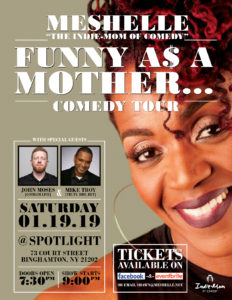 *** RESCHEDULED DATE Join MESHELLE and the Funny A$ A Mother ...#PopUpComedyTour with Special Guests John Moses (Comedy Central, GOTHAM LIVE) and Mike Troy (HBO, Comedy Central, TruTV) as they pop on stage 1 Night Only @ Spotlight in Binghamton, NY.